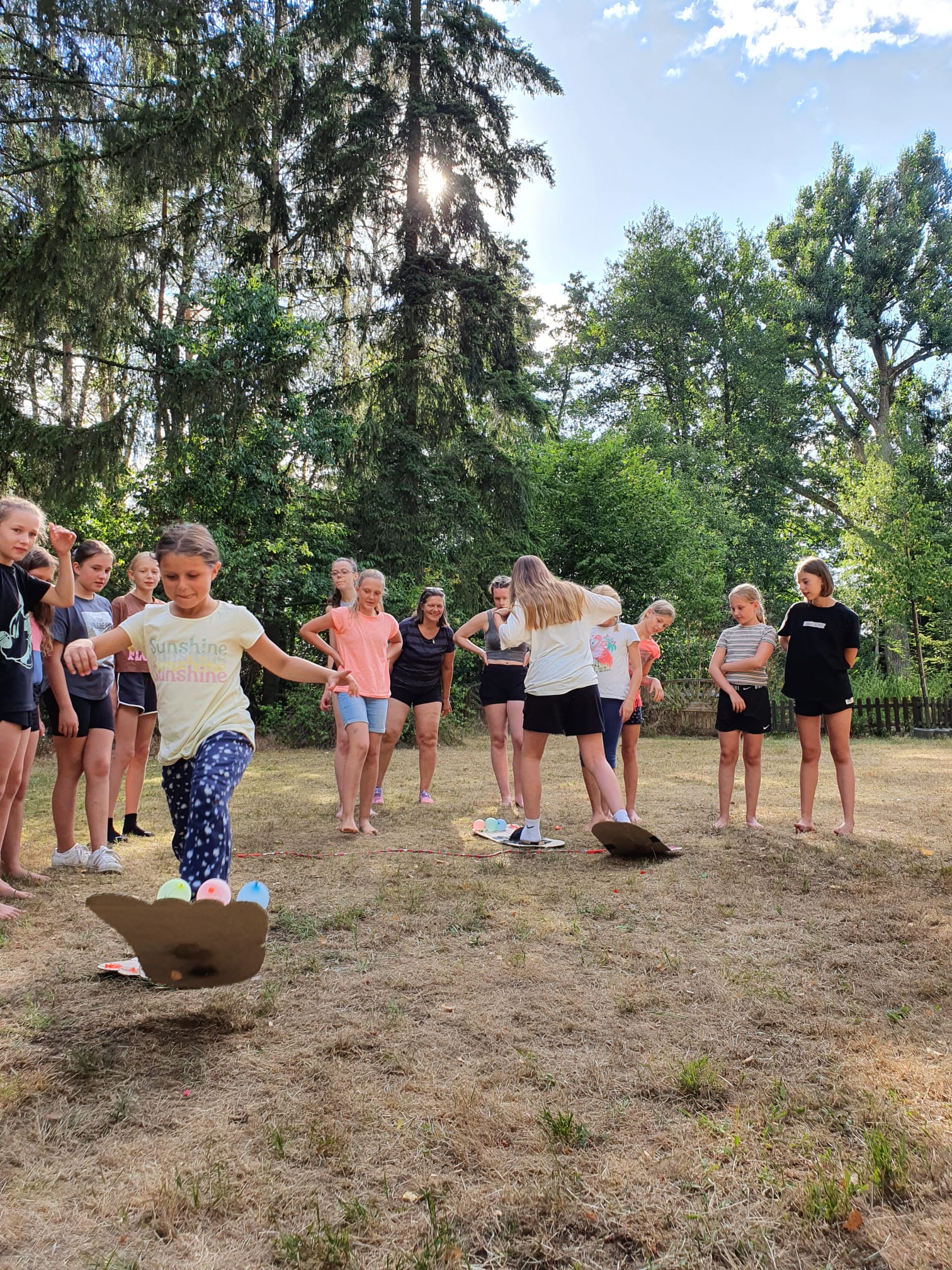 Gemeinsame Spiele gab es auch. Ein lustiges Big-Foot Rennen stand auf dem Plan und ein feucht-