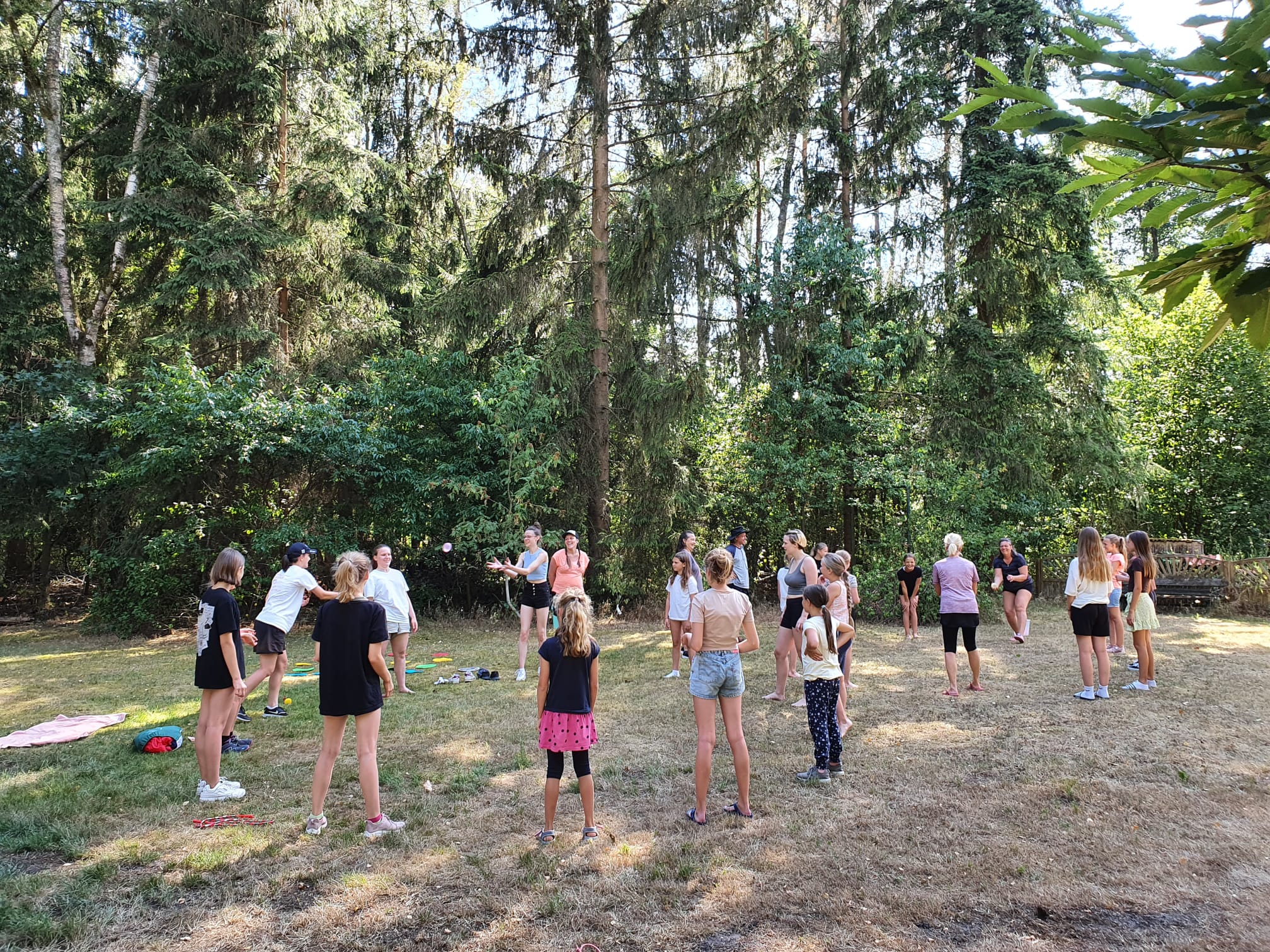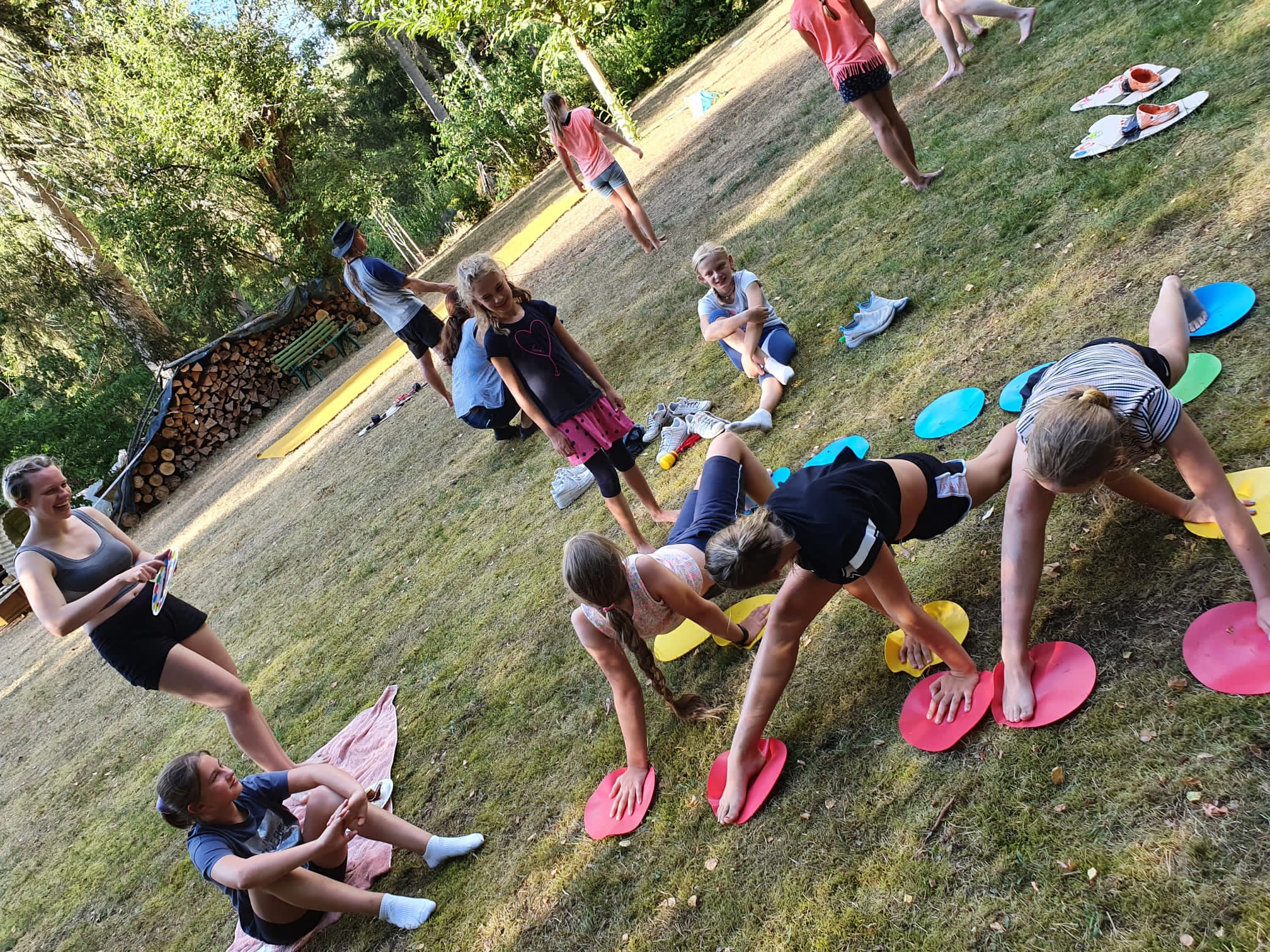 Die Mädels konnten sich an Federball, Frisbee, Twister, Balancekegel, Bodenläufer und Indiaka