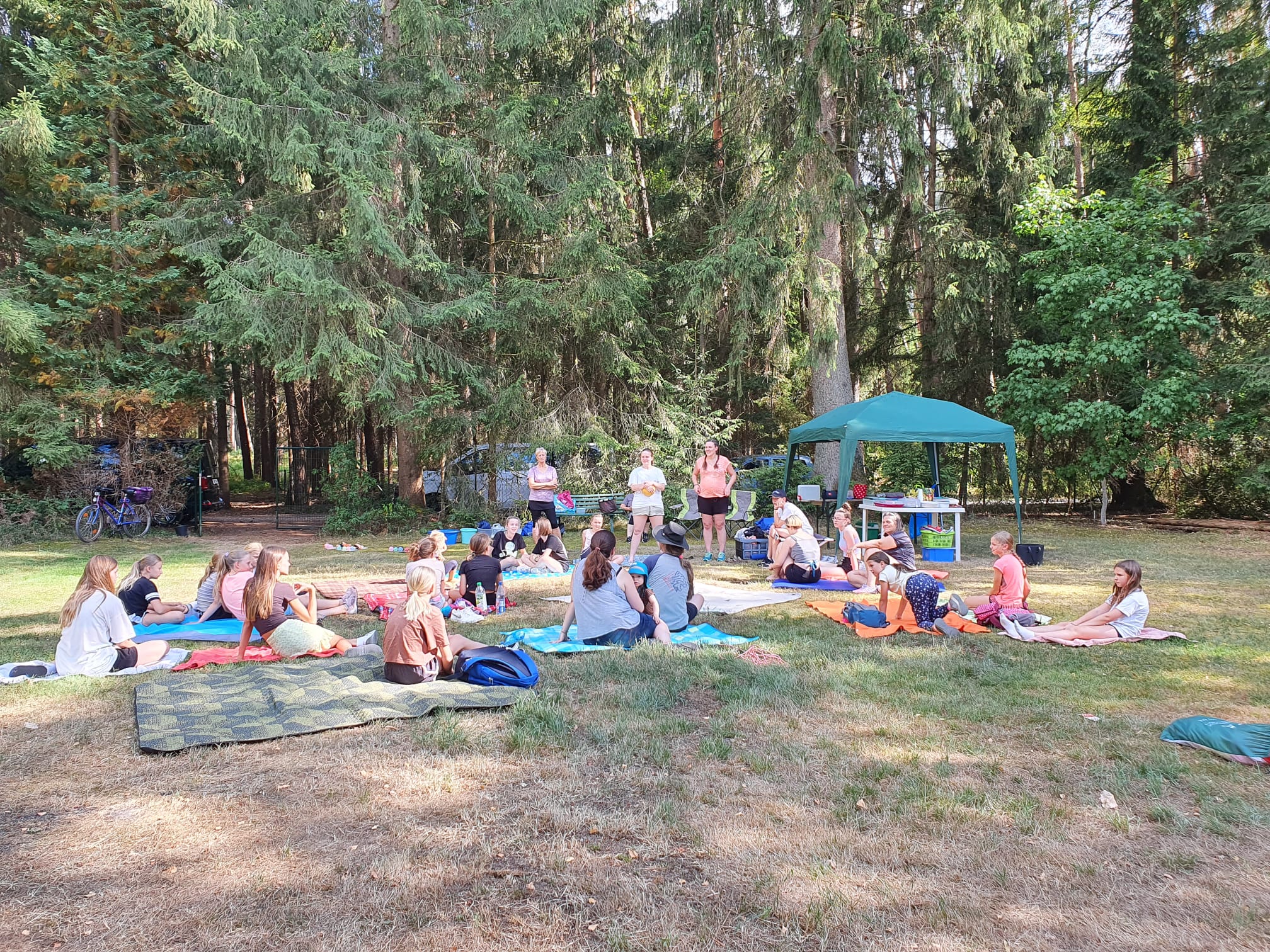 Auf der Wiese im Further Wald von Trainer Dominik wurden Picknickdecken ausgebreitet, leckere