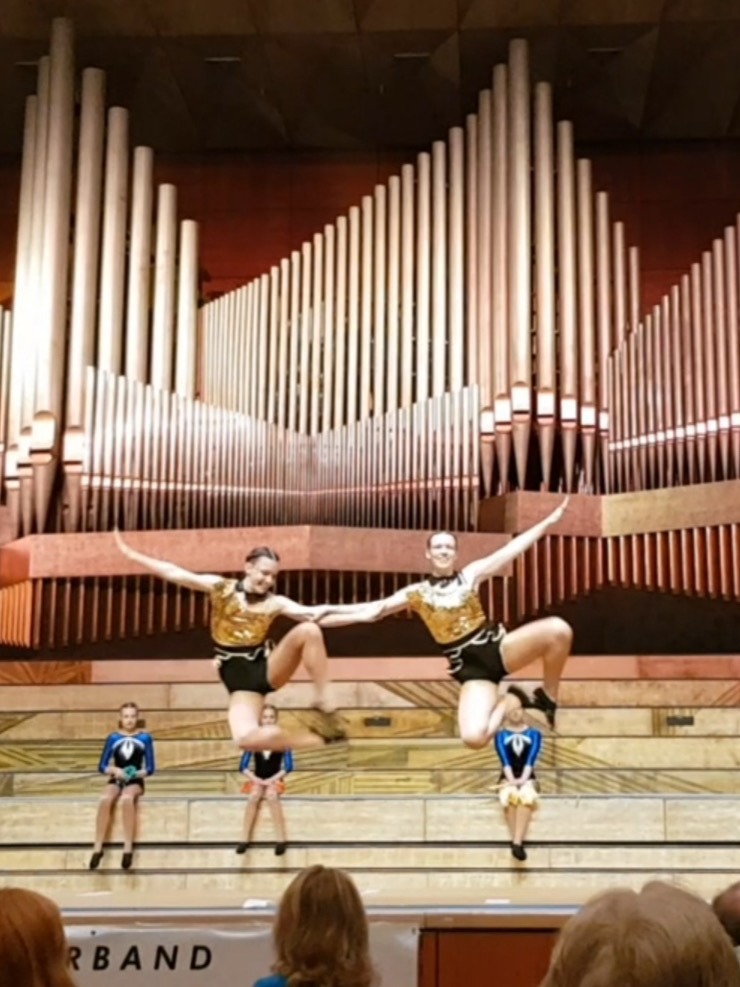 Zuerst begeisterte das Duo Sina & Sophie mit ihrem neuen Tanz. Partnerakrobatik und Synchronität