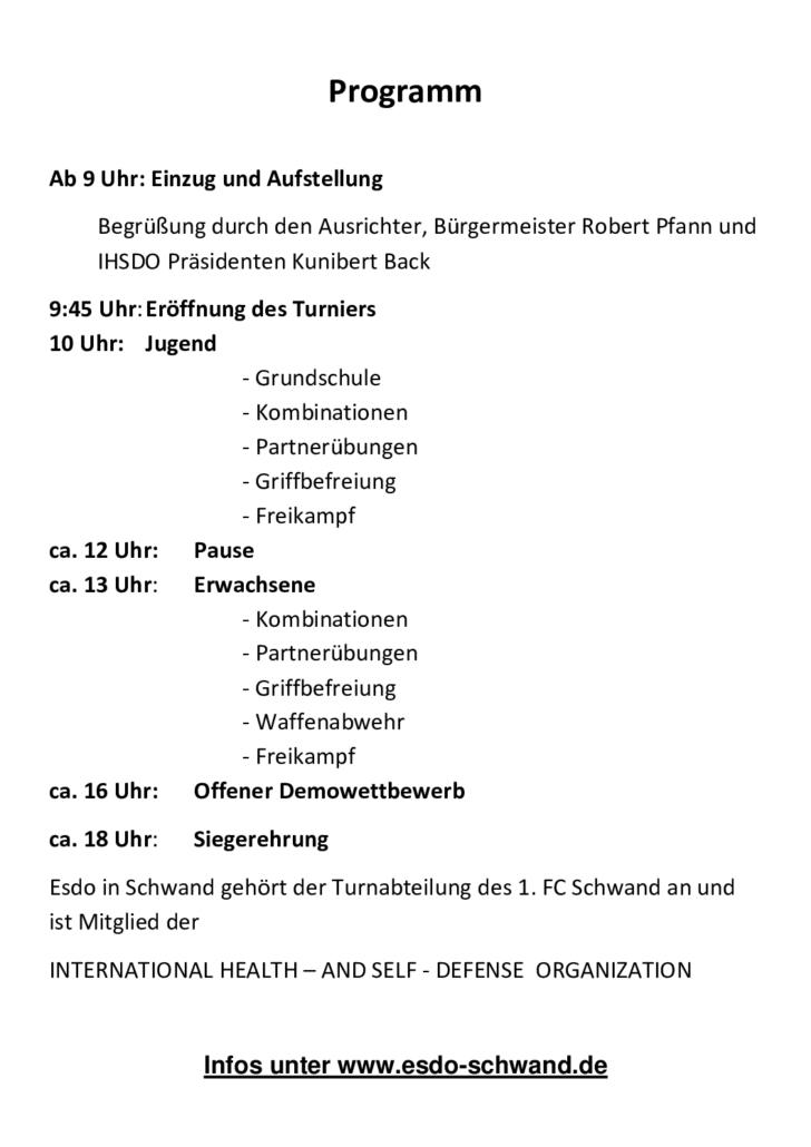Seit 2008 wird beim 1. FC Schwand Selbstverteidigung gelehrt.